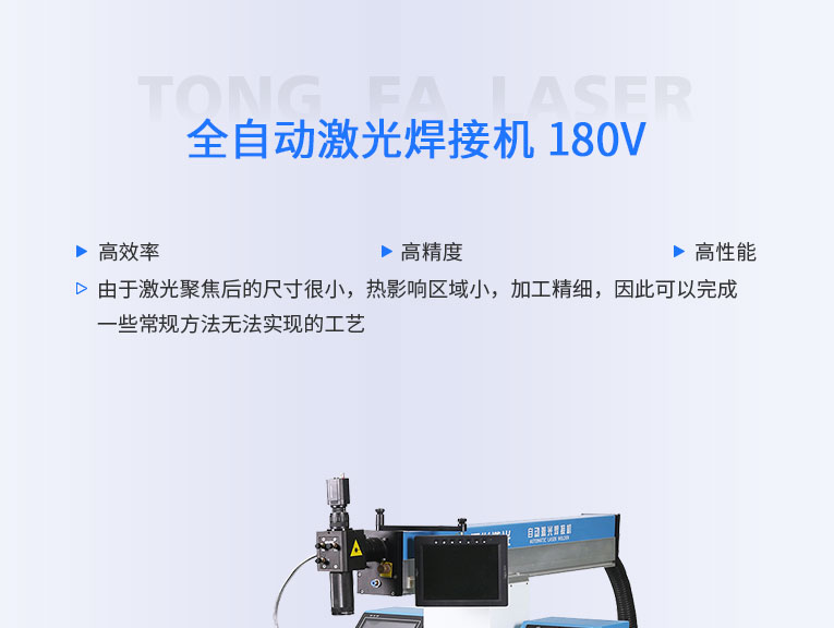 通發激光TFL-300V全自動激光焊接機,廣泛適用各種不銹鋼五金的激光焊接??蓪崿F大多數0.8mm以內料厚五金產品的二維平面焊接。效率高,性能穩定,性價比高。配置精密運動控制器和工作臺高速運動實現焊接。