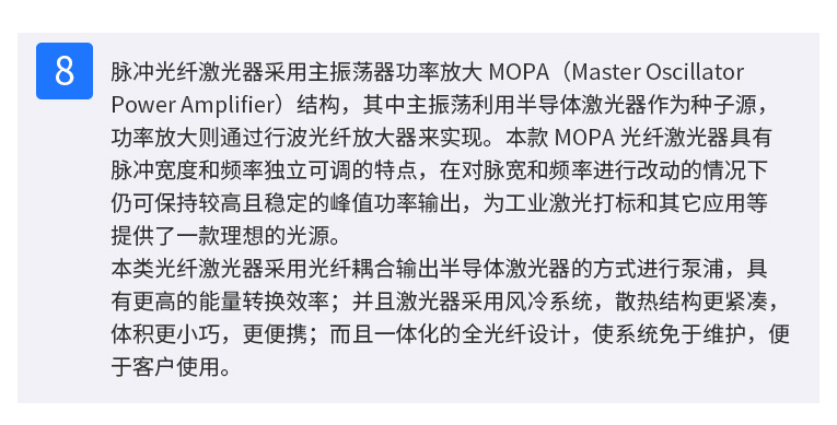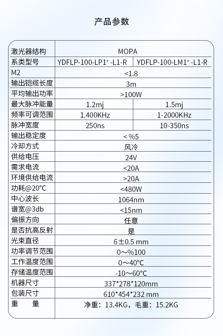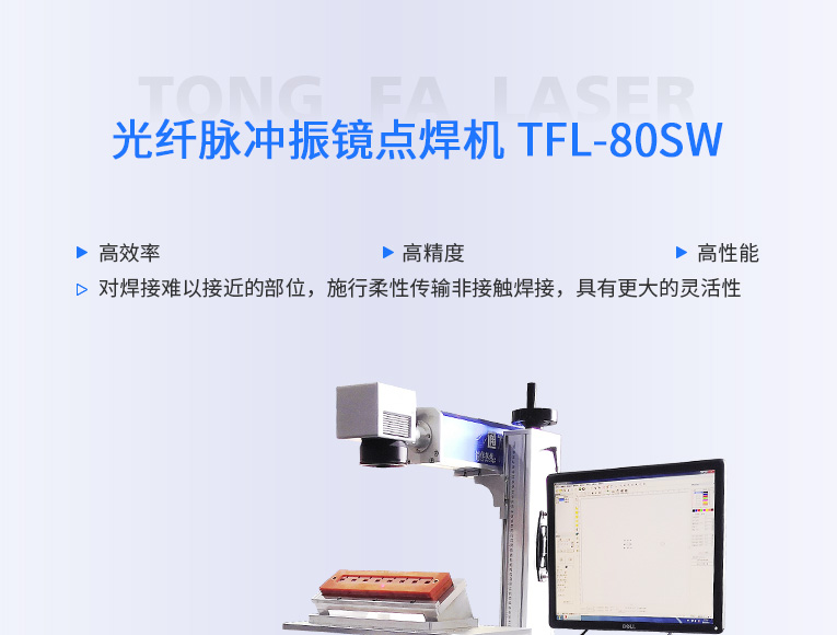 通發(fā)激光TFL-80SW振鏡激光焊接機,采用主振蕩器功率放大 MOPA(Masrer Qscillator Power Amplifier)結(jié)構(gòu),實現(xiàn)脈沖寬度和頻率獨立可調(diào)的特點,在對脈寬和頻率進行改動的情況下仍保持較高且穩(wěn)定的峰值功率輸出,適用于電池、小五金等多個行業(yè)的激光打標、激光焊接應(yīng)用。